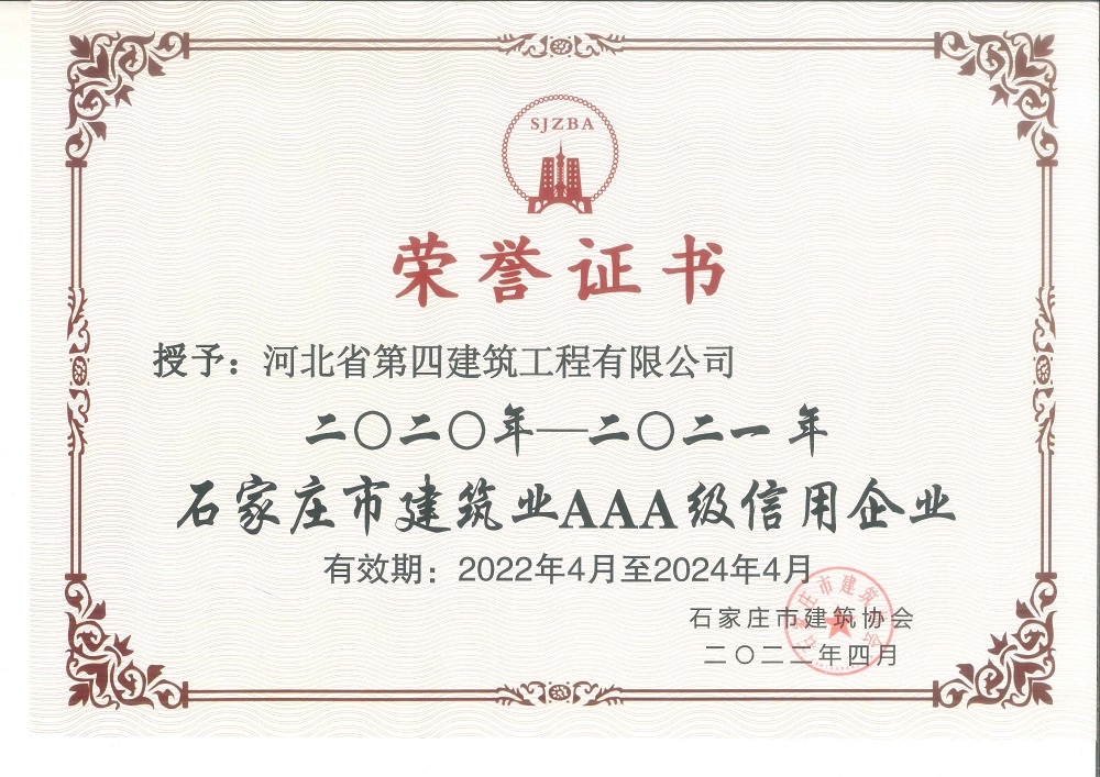 2020-2021年度石家莊市建筑業(yè)AAA信用企業(yè)