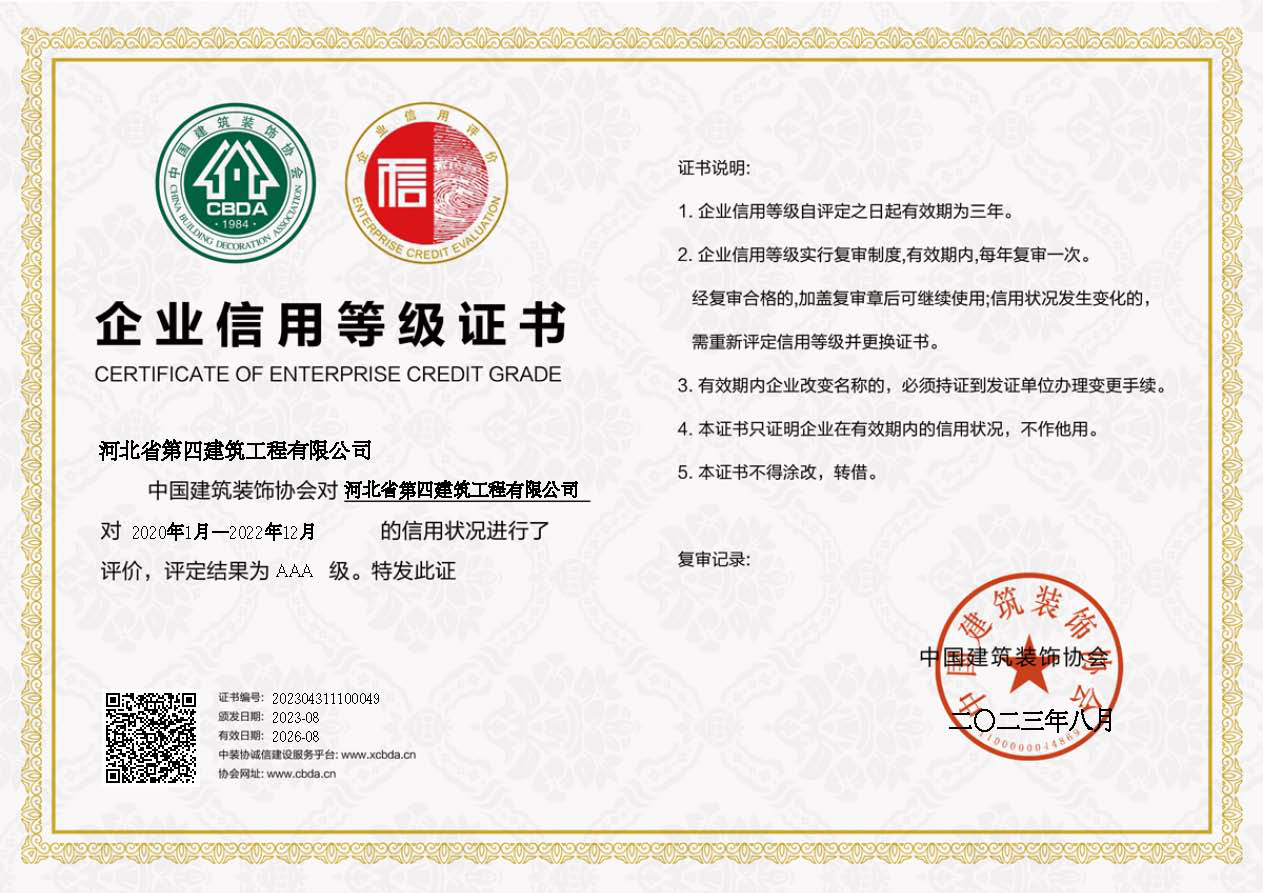 中裝協(xié)“AAA級企業(yè)信用等級證書”