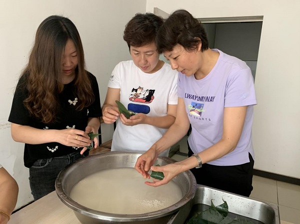 上午9點(diǎn),粽葉、糯米、大棗整齊地擺上桌。大家邊包邊聊,其樂融融。在包粽子現(xiàn)場,熟悉包粽子的能手們飛快地拿起粽葉,兩手一窩卷成漏斗狀,填米、加棗、壓緊、扎繩,一氣呵成。她們還充當(dāng)起“老師”的角色,教“新手”職工包粽子,手把手現(xiàn)場教學(xué),“老師”教得仔細(xì),“學(xué)生”學(xué)得認(rèn)真,但要做出餡料十足、外觀漂亮的粽子還是需要費(fèi)一番功夫的。隨著技巧的不斷嫻熟,一個多小時的時間,形狀各異、大小不一的一百多個粽子就堆積成山了,預(yù)算科副科長竇夢娜說:“我們包粽子的水平真是越來越高了,明年再包會更好!”此時每個人心里都洋溢著一股喜悅之情,有初學(xué)一門手藝的欣喜,有參與集體活動交流感情的滿足。