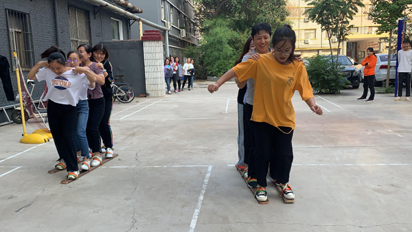 本次活動項目有協(xié)力競走、五子棋、套圈游戲等。機(jī)關(guān)共有30余名職工參加。2點30分,隨著分公司黨總支書記的洪亮宣布,比賽準(zhǔn)時開始。首先進(jìn)行的是協(xié)力競走,一項具有挑戰(zhàn)性的項目。參賽選手四人一組,共穿一雙板鞋,集體行進(jìn)。隨著一聲哨響,競賽馬上進(jìn)入白熱化。選手團(tuán)結(jié)協(xié)作,奮力爭先,觀眾激情高漲,加油助威!領(lǐng)先的職工不驕不躁,動作協(xié)調(diào),保持速度,落后的職工雖然出了一些狀況,但始終不言放棄,全力追趕,參賽職工都體現(xiàn)出奮勇拼搏的精神。最終以用時長短決出了冠亞軍。