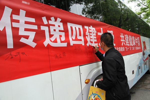 4月28日下午2點,在公司門口,一輛懸掛有“傳遞四建大愛、共建健康中國”紅色條幅的白色獻血車,和門口正上方的“河北四建”四個紅色大字相互映襯,顯得格外醒目;一條由四建職工組成的隊伍“長龍”,正在徐徐向前移動著。此時,由公司黨委宣傳部和團委聯(lián)合組織的以“傳遞四建大愛、共建健康中國”為主題的迎“五一”慶“五四”無償獻血活動,正在有條不紊進行中。公司機關(guān)以及附近片區(qū)的各單位職工共計48人參與。