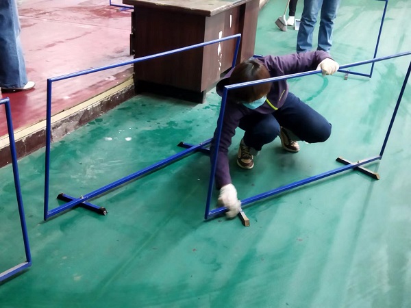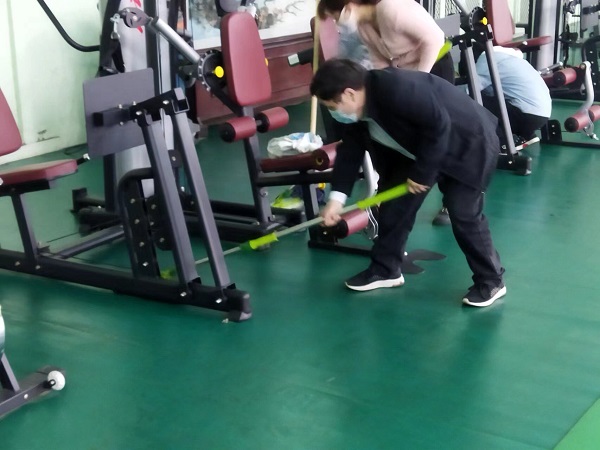 參與活動(dòng)的20余名同志,分工合作,雖然大家來自不同部門、不同崗位,但爭(zhēng)先恐后、合作默契,清理地面、擦拭健身器材、清潔桌凳。“前面的男同志們加油了,我們快趕上你們了!”負(fù)責(zé)拖地的九分公司主任經(jīng)濟(jì)師劉彩在后面說道?!斑@個(gè)乒乓球擋布拿抹布擦拭的效果不太好,用外面的高壓水槍沖洗試試吧!”九分公司主任會(huì)計(jì)師付世芳一邊用抹布擦拭擋布一邊提出自己的合理化建議,“這個(gè)辦法好!”九分公司綜合辦公室主任張路平同意道。