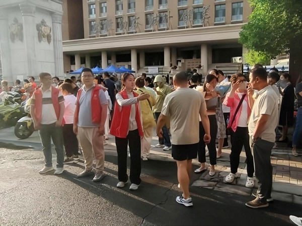 動(dòng)態(tài)響應(yīng)服務(wù),溫暖考場(chǎng)周邊。8日上午,當(dāng)一位老大爺騎著一輛載有文具的三輪車在校門口準(zhǔn)備打開手持喇叭時(shí),負(fù)責(zé)入口引導(dǎo)的志愿者立即上前,輕聲勸說其暫時(shí)關(guān)閉喇叭,并引導(dǎo)其??吭谥付▍^(qū)域。9日下午,突降陣雨,一位騎車人突然在校門口滑倒,正在執(zhí)勤的2名分公司志愿者迅速過去查看,詳細(xì)詢問駕駛?cè)藗椋⌒膶⑵浞銎?,并陪同至志愿服?wù)亭進(jìn)行簡(jiǎn)單處理,同時(shí)將占道的電動(dòng)車推到便道上,保障道路暢通。這些暖心瞬間,讓家長(zhǎng)們倍感安心,也充分展現(xiàn)了志愿者們的責(zé)任與擔(dān)當(dāng)。