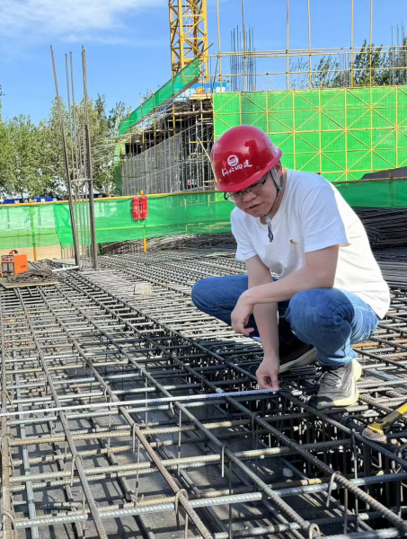 在搶抓進(jìn)度的同時,史驚濤深知質(zhì)量是項(xiàng)目的生命線。他帶領(lǐng)團(tuán)隊(duì)狠抓質(zhì)量控制,實(shí)現(xiàn)過程精品、一次成優(yōu),定期召開“質(zhì)量分析會+作業(yè)面交底會”,嚴(yán)控每一個環(huán)節(jié)、精研每一道工序,尤其是在地下室施工鋼筋綁扎階段,鋼筋間距密、數(shù)量多,柱插筋、集水坑鋼筋要求位置精確,施工難度較大,他認(rèn)真分析質(zhì)量控制重點(diǎn)和難點(diǎn),進(jìn)行專項(xiàng)攻關(guān),結(jié)合現(xiàn)場實(shí)際情況反復(fù)推敲施工方案,按照圖紙?jiān)O(shè)計(jì)間距,在基礎(chǔ)墊層上彈好鋼筋位置線,綁扎時嚴(yán)格按照位置線進(jìn)行柱插筋及集水坑鋼筋的放置及綁扎,墻筋采用水平和豎向定位筋,確保綁扎牢固,間距均勻,縱橫成線。