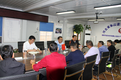在會(huì)議室,董富強(qiáng)與項(xiàng)目部管理人員進(jìn)行了工作交流,對(duì)各項(xiàng)工作給予肯定,強(qiáng)調(diào)項(xiàng)目部要提高站位,從嚴(yán)要求,以“四個(gè)樹(shù)”為工作著力點(diǎn),在安全、質(zhì)量、進(jìn)度、文明施工方面再發(fā)力,再提升,提高項(xiàng)目管理效果。一是安全樹(shù)紅線,要抓住公司第17次“百日安全生產(chǎn)無(wú)事故倒計(jì)時(shí)”活動(dòng)契機(jī),強(qiáng)化安全責(zé)任,樹(shù)牢“紅線意識(shí)”,從嚴(yán)落實(shí)安全制度,工作要做細(xì),杜絕一切安全事故發(fā)生。高支模專項(xiàng)方案屬于超危大項(xiàng)目,一定要按照規(guī)范要求組織施工。二是質(zhì)量樹(shù)品牌。要弘揚(yáng)“工匠精神”,做到標(biāo)準(zhǔn)化施工,確?;炷撩軐?shí)度,結(jié)構(gòu)幾何尺寸符合圖紙?jiān)O(shè)計(jì)要求,切實(shí)做好質(zhì)量通病防范措施,做到精益求精,打造好四建品牌。三是進(jìn)度樹(shù)形象,要增強(qiáng)履約意識(shí),倒排工期,制定詳細(xì)的進(jìn)度計(jì)劃。要發(fā)揮四建鐵軍精神,抓住目前黃金時(shí)間全力施工,打硬仗、打勝仗,確保“115”目標(biāo)實(shí)現(xiàn),展現(xiàn)河北四建特級(jí)企業(yè)形象。四是文明施工樹(shù)標(biāo)桿,現(xiàn)場(chǎng)各項(xiàng)文明施工要落實(shí)到位,做好揚(yáng)塵防治工作,達(dá)到觀摩工地標(biāo)準(zhǔn)。