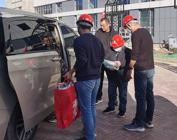 結(jié)合檢查更節(jié)儉。今年公司工會改變以往“冬送溫暖”由工會安排人員專門到項(xiàng)目慰問的形式,而是結(jié)合公司領(lǐng)導(dǎo)到項(xiàng)目檢查工作時,由公司領(lǐng)導(dǎo)代表工會對項(xiàng)目一線職工進(jìn)行慰問,既帶去公司的關(guān)懷,又節(jié)省了差旅費(fèi)用。公司黨委書記、董事長董富強(qiáng)為五分公司承建的東立實(shí)業(yè)集團(tuán)鐵嶺大伙房粉磨站項(xiàng)目職工,公司黨委副書記、董事、總經(jīng)理唐志強(qiáng)和黨委常委、副總經(jīng)理劉金河為四分公司寧晉項(xiàng)目職工,公司黨委副書記、紀(jì)委書記、工會主席李懷生為九分公司山西臨汾威頓項(xiàng)目職工送去了慰問品,其他項(xiàng)目以快遞形式把慰問品送到一線職工手中,做到14個直管項(xiàng)目一線職工慰問全覆蓋,充分體現(xiàn)了公司工會對一線職工的關(guān)懷與愛護(hù)。