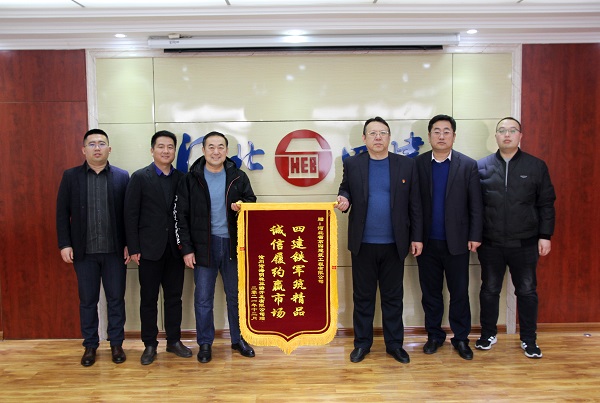 2022年1月7日上午,滄州滄海明珠旅游開發(fā)有限公司副總經(jīng)理姬新強(qiáng)、項(xiàng)目推進(jìn)辦主任楊龍生一行人專程從滄州來到公司,感謝公司保節(jié)點(diǎn)、高質(zhì)量地完成施工任務(wù),并鄭重地將寫有“四建鐵軍筑精品 誠信履約贏市場”的錦旗送到公司黨委副書記、總經(jīng)理唐志強(qiáng)手中。公司副總經(jīng)理張新煜、三分公司經(jīng)理李書偉一同接待了姬新強(qiáng)一行。