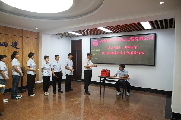 洪水無(wú)情,四建有愛。公司發(fā)揚(yáng)“一方有難,八方支援”的中華民族優(yōu)良傳統(tǒng),9月7日—14日,僅一周時(shí)間,全體職工匯聚愛心捐助款項(xiàng)共計(jì)111723元,通過集團(tuán)公司賬戶捐獻(xiàn)給易縣人民,用于易縣抗洪救災(zāi)和災(zāi)區(qū)人民重建家園。