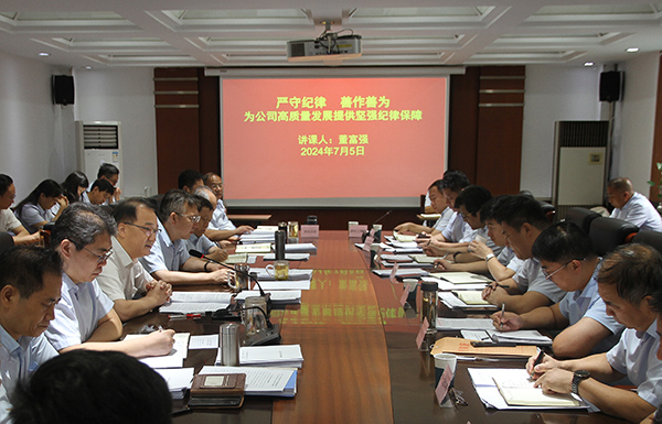 7月5日上午,公司黨委書記、董事長董富強在三樓會議室講授主題為“嚴守黨紀,善作善為,為公司高質(zhì)量發(fā)展提供堅強紀律保障”的專題黨課,公司領導班子成員、各部室負責人以及各分公司書記、經(jīng)理參加了學習。