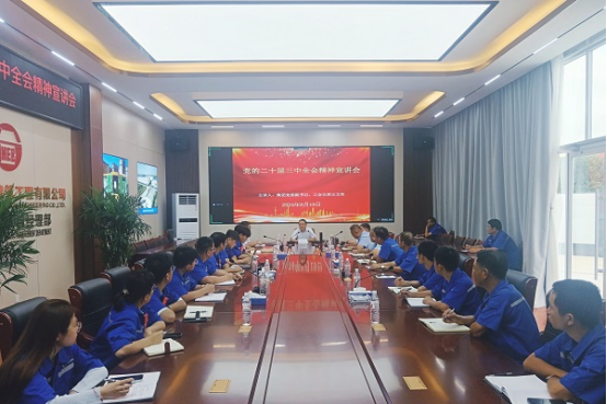 8月19日下午3點,四分公司石家莊市西南地表水廠項目全體職工在會議室齊聚一堂,聆聽集團黨委副書記、董事、工會主席王文利所作的黨的二十屆三中全會精神的宣講。集團黨委辦公室主任張占飛,公司黨委副書記、紀(jì)委書記、工會主席李懷生,分公司黨總支書記王建民一同參加。分公司其他班子成員、機關(guān)中層及職工通過線上一同學(xué)習(xí)。