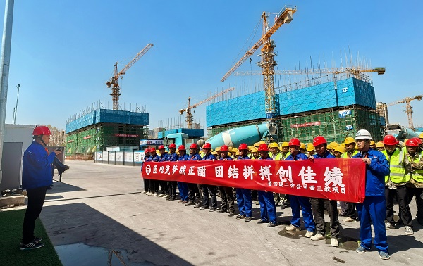 戰(zhàn)鼓催征急,攻堅正當(dāng)時。3月31日,二分公司西三教城中村改造回遷項目舉辦勞動競賽啟動儀式,吹響“以賽促干”的沖鋒號,激勵全體建設(shè)者鼓足干勁,搶抓黃金施工期,高質(zhì)量推進工程建設(shè)。