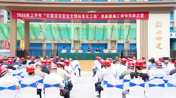 6月26日,2025年上半年“石家莊市安全文明標(biāo)準(zhǔn)化工地”表彰暨施工現(xiàn)場觀摩大會在二分公司西三教城中村改造回遷項目舉行。石家莊市住房和城鄉(xiāng)建設(shè)局副局長蘇西彥、河北省建筑業(yè)協(xié)會副會長李同澤、石家莊市建筑協(xié)會執(zhí)行會長王洪祥、石家莊市建筑協(xié)會安全專業(yè)委員會秘書長劉振波、河北建工集團(tuán)安全管理部部長柴竑、公司副總經(jīng)理劉金河,石家莊市住建集團(tuán)建筑工程有限公司安全主管、石家莊市建筑協(xié)會安全專業(yè)委員會副秘書長王靜等領(lǐng)導(dǎo),以及來自全市建筑行業(yè)近200名同仁參與會議并觀摩。