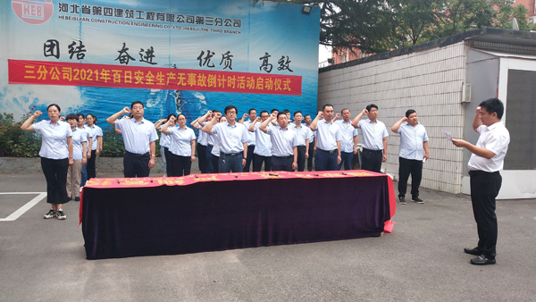 9月18日上午,三分公司組織機(jī)關(guān)全體職工在分公司院內(nèi)舉行了第十八次“百日安全生產(chǎn)無(wú)事故倒計(jì)時(shí)”活動(dòng)啟動(dòng)儀式,分公司經(jīng)理李書偉帶領(lǐng)職工進(jìn)行安全宣誓,隨后大家在印有“履職盡責(zé),嚴(yán)細(xì)管控”活動(dòng)主題的條幅上簽名。各項(xiàng)目部也相繼開展了倒計(jì)時(shí)活動(dòng)啟動(dòng)儀式。