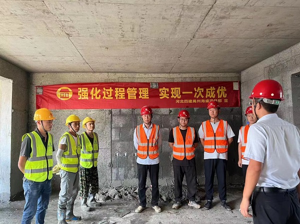 “為了強(qiáng)化全員質(zhì)量意識,弘揚工匠精神,促進(jìn)操作技能、管理技能提升,現(xiàn)開展質(zhì)量月技能競賽……”項目主管師蔡昭作為總裁判作了賽前動員,宣布了比賽內(nèi)容、規(guī)則、程序、評分標(biāo)準(zhǔn)等,今年新入職職工、部分作業(yè)工人及工長觀賽。