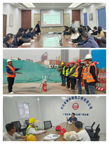排查隱患,防患于未然。五分公司組織機關(guān)與項目部進行了全面深入的火災隱患大排查。機關(guān)重點針對辦公室、電動車棚、食堂和職工宿舍等區(qū)域展開細致排查,并及時整改發(fā)現(xiàn)的隱患。11月12日,廣陽項目部組織全體施工人員開展學習與消防演練活動,特別針對塔司、電梯司機、信號工等特殊工種作業(yè)人員進行了有針對性的培訓,結(jié)合施工現(xiàn)場實際情況詳細解讀消防法規(guī)的核心要點,深入剖析因電氣故障、明火使用不當?shù)纫l(fā)火災的典型案例,著重強調(diào)塔吊、施工升降機等設備運行區(qū)域及操作室的防火要點以及消防器材的正確配備、使用和日常維護方法。此外,因當?shù)丨h(huán)保政策停工的藁城小學、定興糧庫項目,安排專人值守,定期加強對消防設施的日常檢查,并詳細記錄各類消防設施的狀態(tài)信息,如滅火器壓力是否正常等,確保停工期間消防設施的完好有效,將火災隱患扼殺在萌芽狀態(tài)。(五分公司)